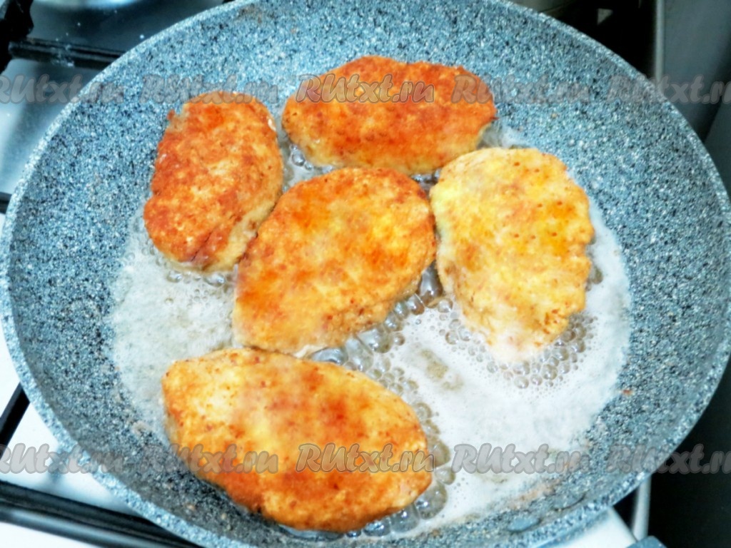 Жарим на предварительно разогретой сковороде с растительным маслом до золотистого цвета с двух сторон.