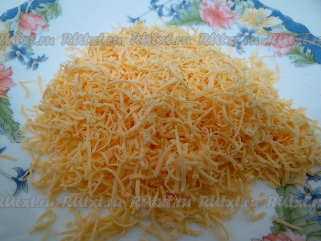 Прежде чем приступить к приготовлению котлет, предварительно приготовим для них начинку. Делать её лучше всего впрок, а затем отправить в морозильную камеру и по мере надобности использовать. Сыр натираем на мелкой тёрке.