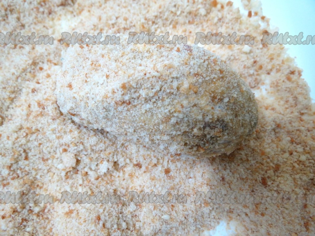 После яйца обваливаем в панировочных сухарях.