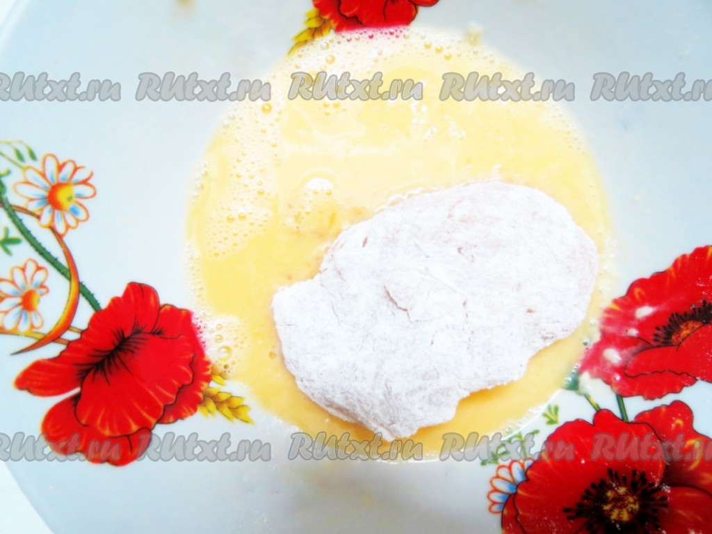 Затем опускаем во взбитое яйцо.