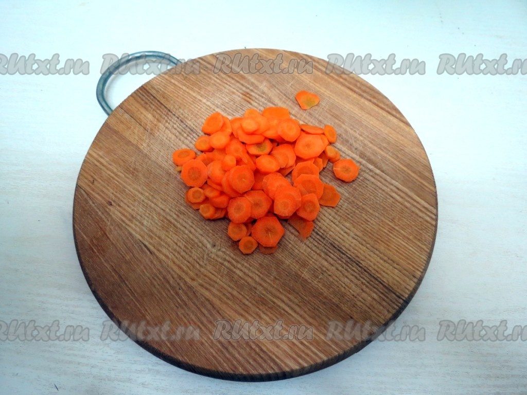 Морковь очищаем и нарезаем на тонкие кружочки (или полукружочки).