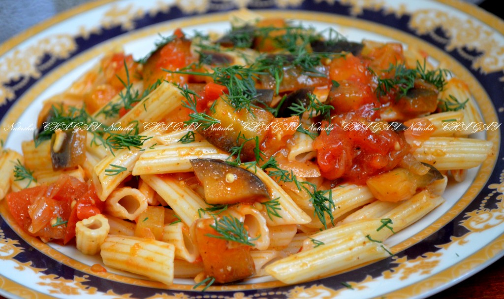 Макароны с баклажанами и помидорами
