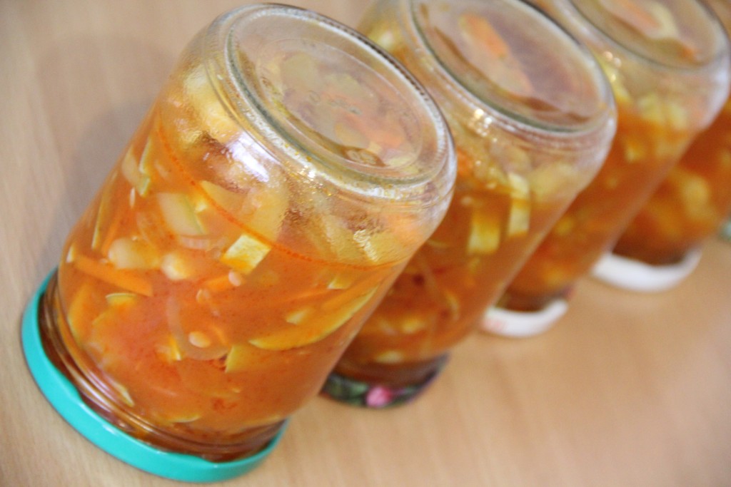 Аккуратно разложить горячую овощную смесь по стерильным банкам и закрутить крышками. Перевернуть баночки кверху дном и укутать в плед до полного остывания. Хранить салат из кабачков в тёмном, прохладном месте (я храню в кладовке). Порадуйте себя зимой ароматными и вкусными "Сергиево-Посадскими" кабачками, приготовленными по этому рецепту.