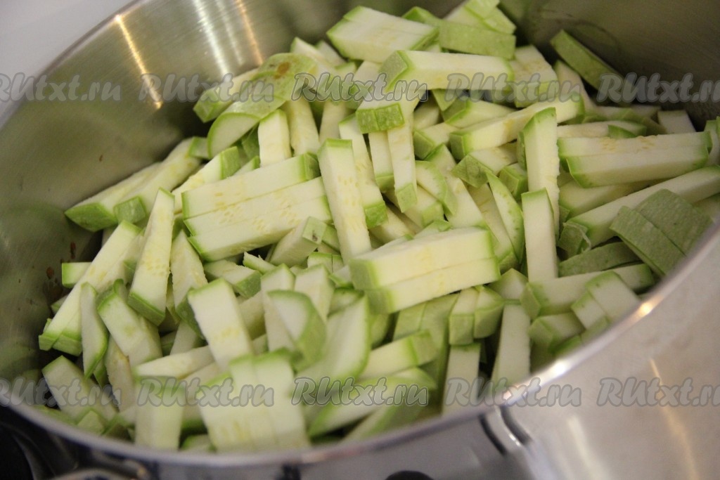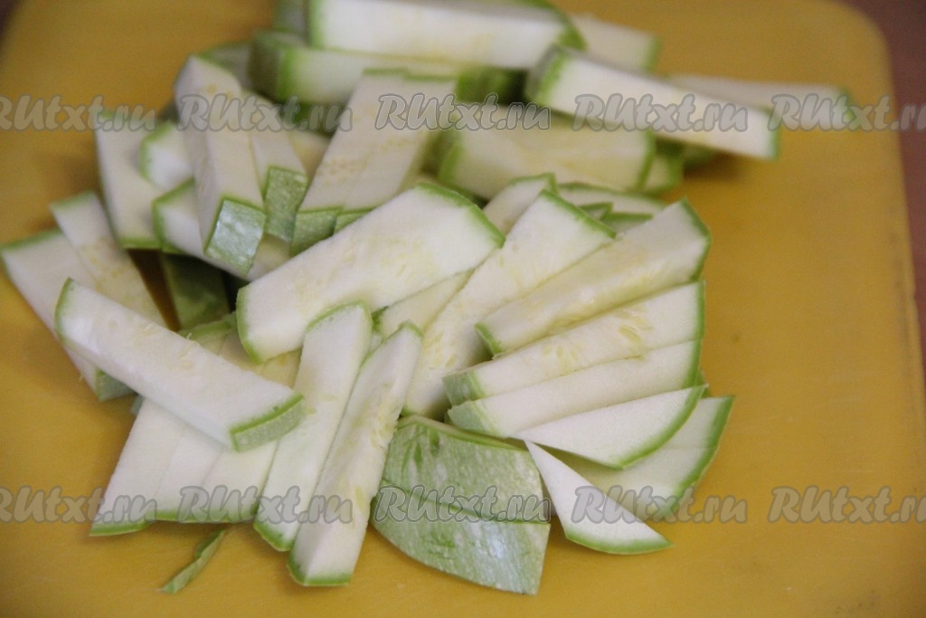 Кабачки вымыть и срезать хвостики, лучше использовать молодые кабачки с мягкими шкурками и без косточек. Перец вымыть и удалить семена. Лук и морковь почистить.