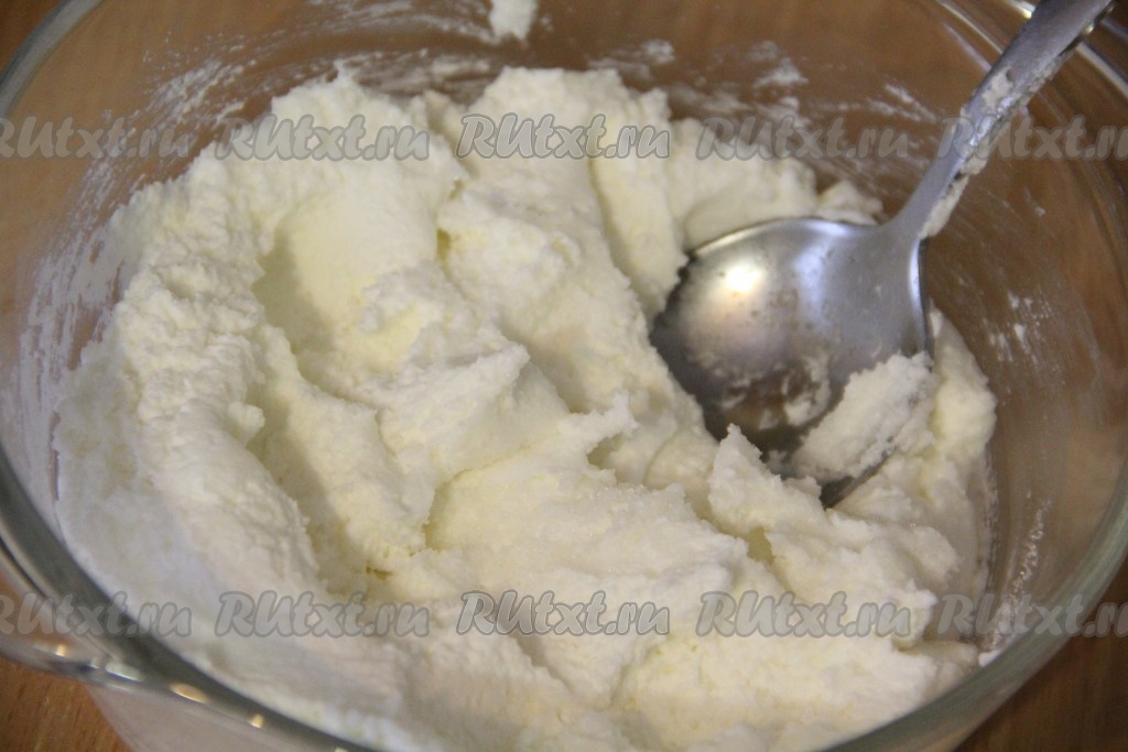 Хорошо перемешать творожную массу до однородного состояния.