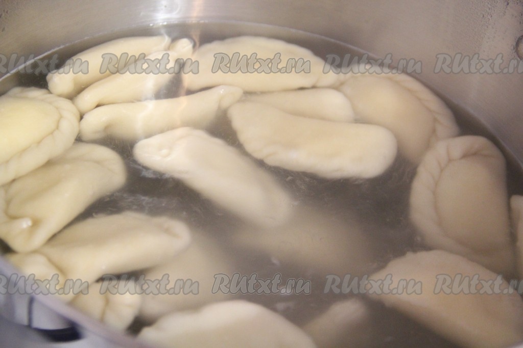 Кастрюлю с водой поставить на огонь и довести до кипения. Добавить в воду щепотку соли. Аккуратно опустить вареники в кипящую воду. Я во время опускания вареников слегка помешиваю ложкой, чтобы вареники не слипались. Варить 10 минут. Готовые вареники вынуть шумовкой и подать к столу.