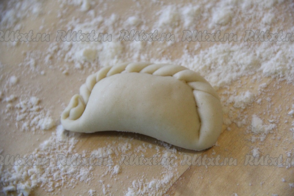 Защипать края теста так, чтобы начинка осталась внутри. Я решила сделать красивый, витой краешек.