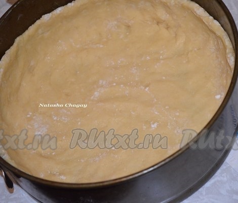 В форму диаметром 20 см выложить песочное тесто, формируя бортики высотой примерно 3,5 см.