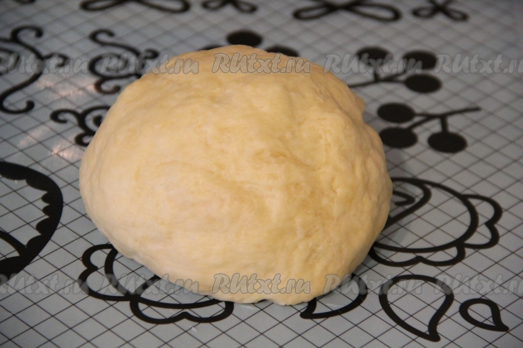 Влить масляную смесь в муку и замесить тесто. Тесто получится гладкое, мягкое и не липнущее к рукам. По консистенции, как пластилин, очень приятное в работе.