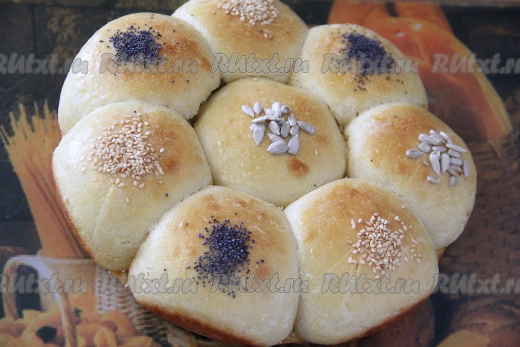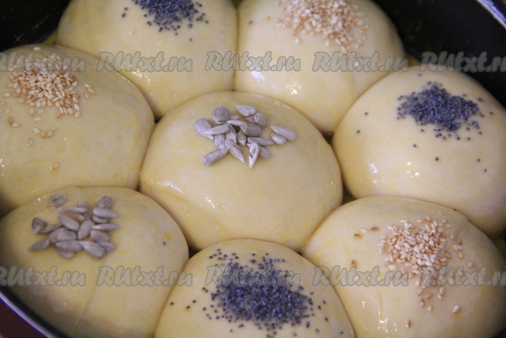 По желанию, посыпать верх булочек маком, кунжутом или очищенными семечками.