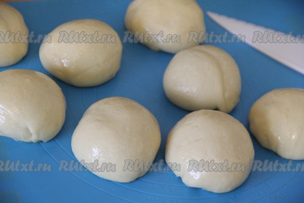 Форму для выпечки смазать растительным (или сливочным) маслом. Выложить булочки в форму неплотно друг к другу.