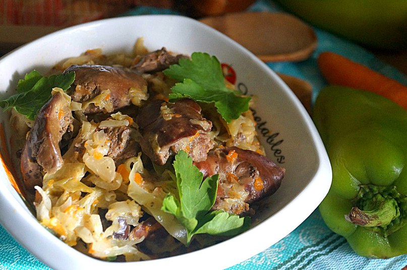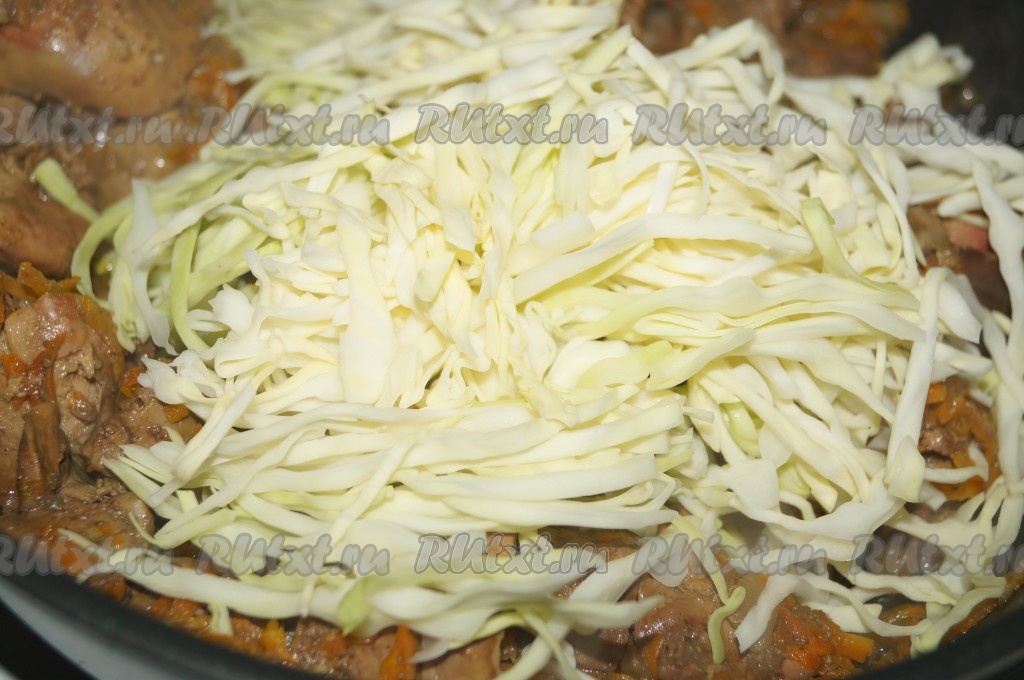 Очень вкусная капуста, тушеная с куриной печенью, готова.