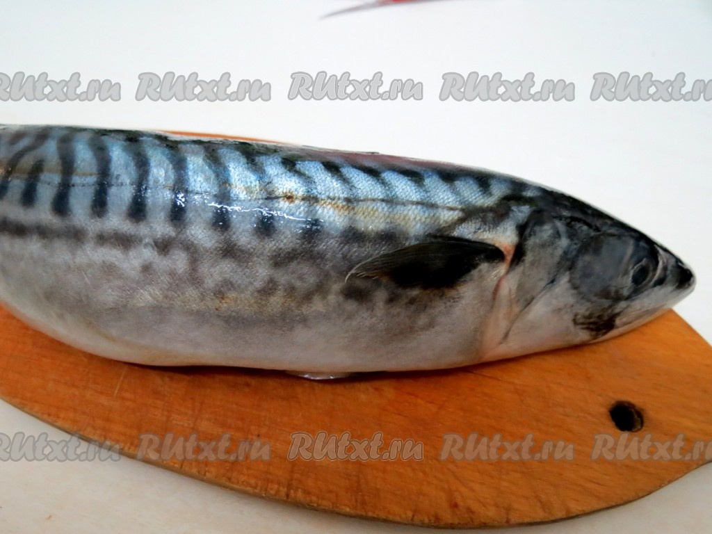 Скумбрию для фарширования выбираем крупную. Если она заморожена, размораживаем её на полочке холодильника (желательно оставить на ночь) или при комнатной температуре. Моем рыбу.