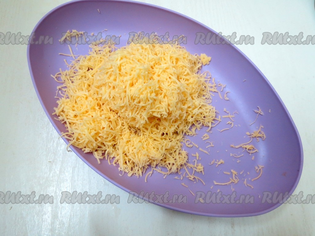 Сыр натираем на мелкой тёрке.