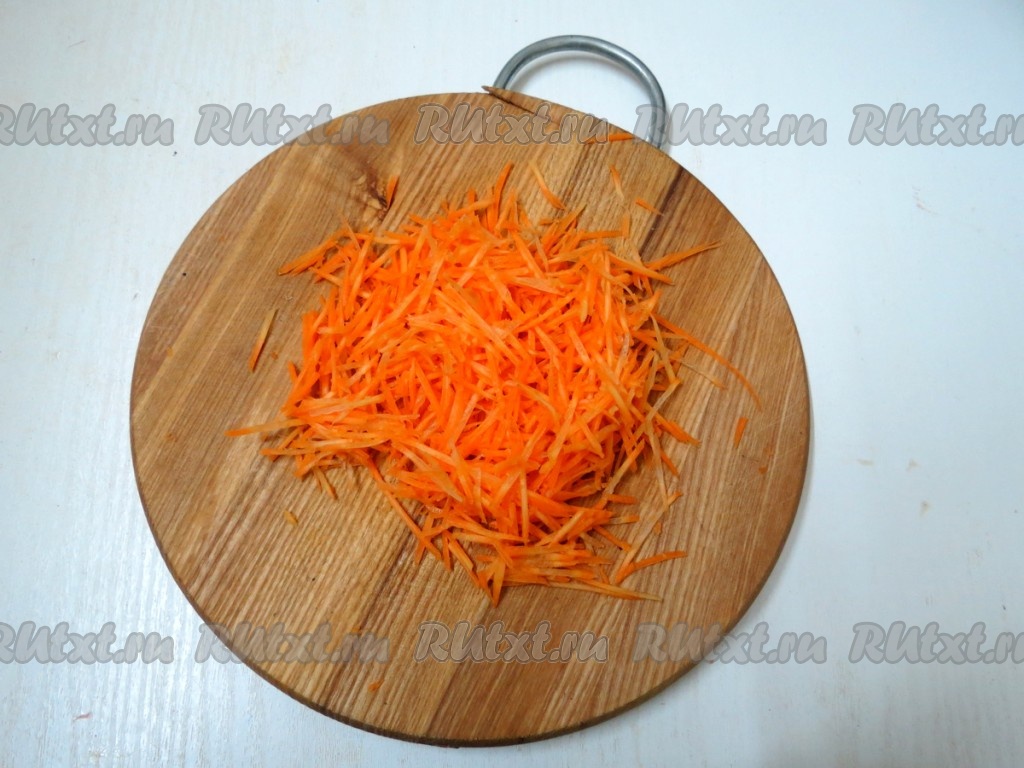 Морковь очищаем и натираем на мелкой тёрке.