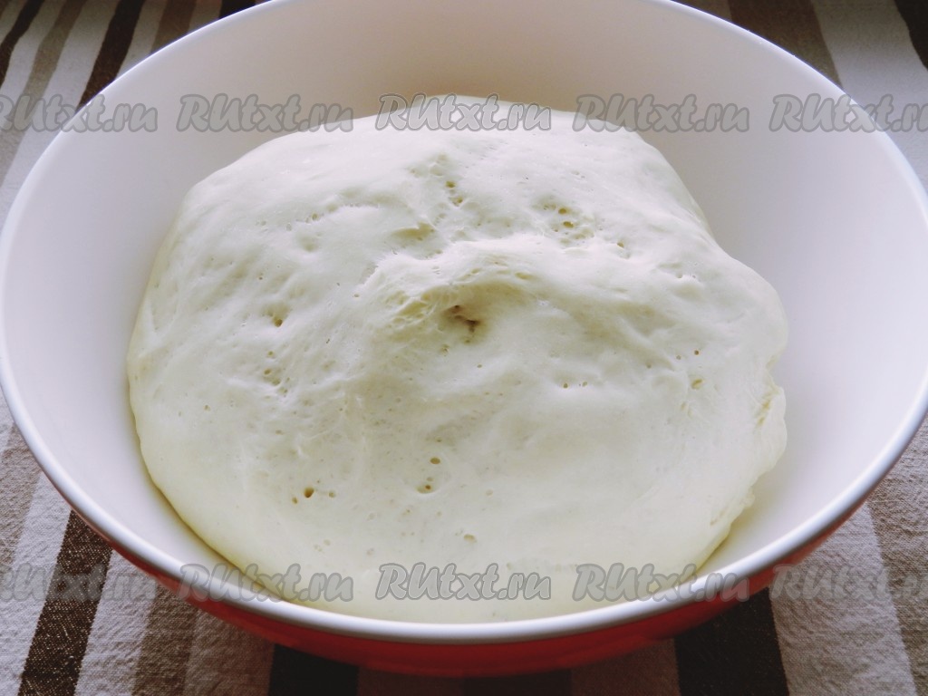 Готовое дрожжевое тесто для пиццы достаньте из хлебопечки.