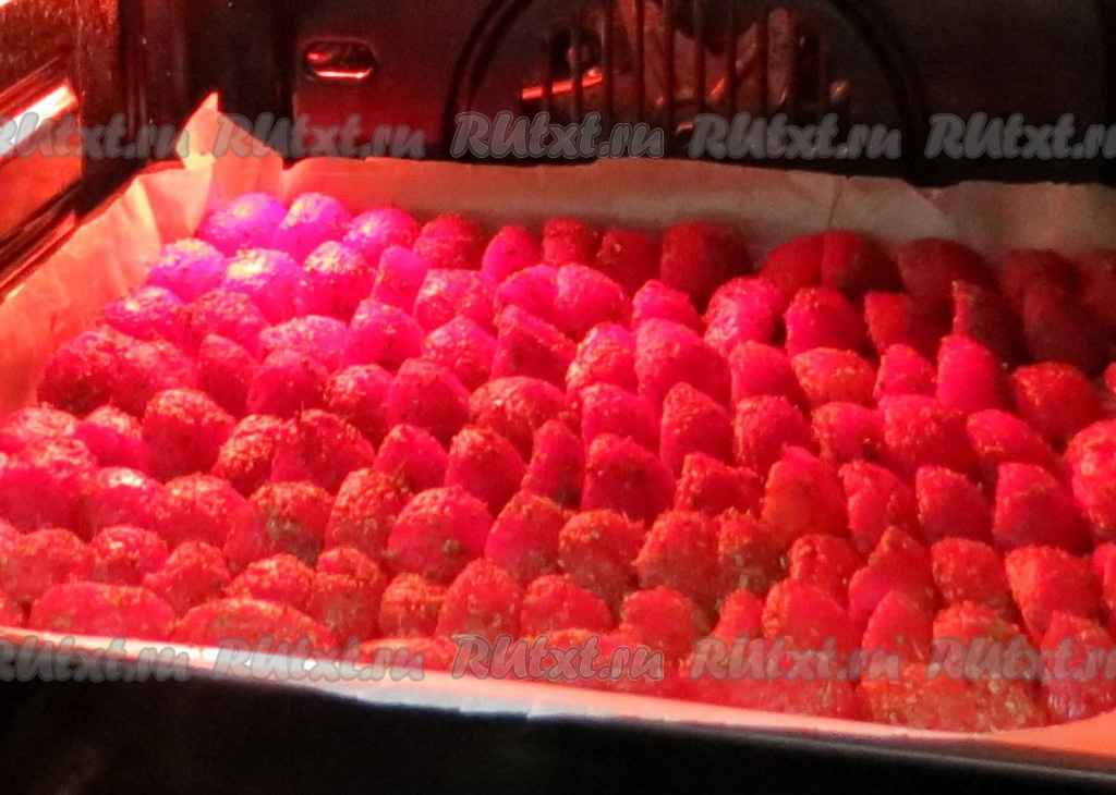 Противень застилаем бумагой для выпечки, перекладываем на него помидоры и отправляем в духовку.