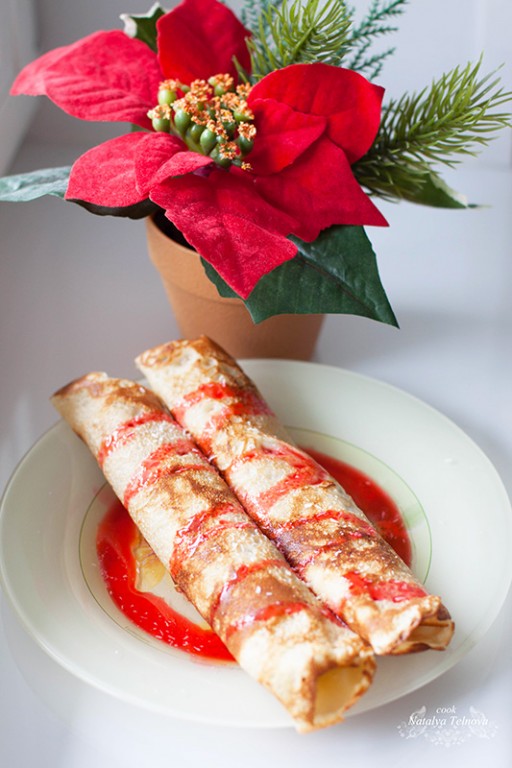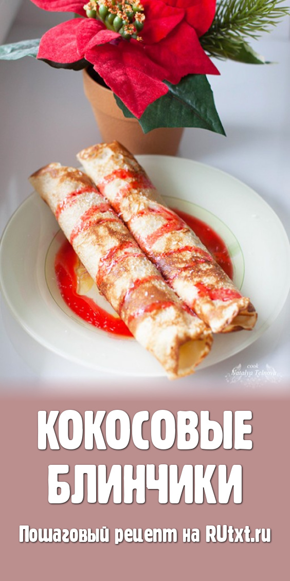 Рецепт этих чудесных блинчиков я встретила на страничке блога у своей знакомой, которая участвовала в "Блинном марафоне". Заинтересовавшись, я не смогла отложить этот оригинальный рецепт в долгий ящик. Спешу порадовать вас моими готовыми кокосовыми блинчиками под клубничным сиропом. Соус вы можете приготовить самостоятельно или приобрести в магазине. Соусу совсем не обязательно быть клубничным, но автор рецепта отметила это сочетание гармоничным!