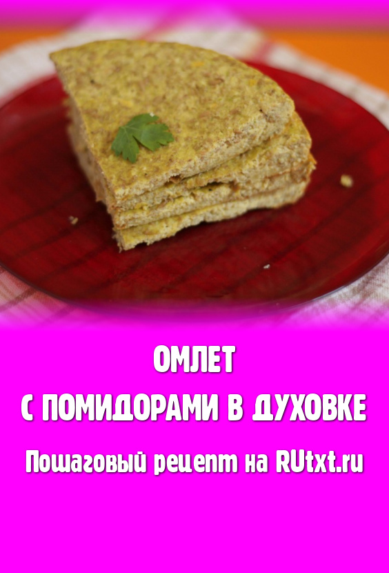 Омлет с помидорами, приготовленный в духовке по этому рецепту, замечателен тем, что он выпекается тонким. Поэтому его можно нарезать маленькими кусочками и подать в качестве гарнира со свежими овощами или добавить в салат, уж очень хорошо он сочетается со свежими помидорчиками, болгарским перцем и зерненным творогом. А ещё в такой омлет можно завернуть любую начинку, разнообразив это блюдо.