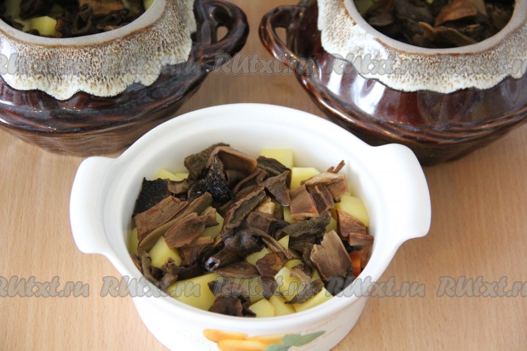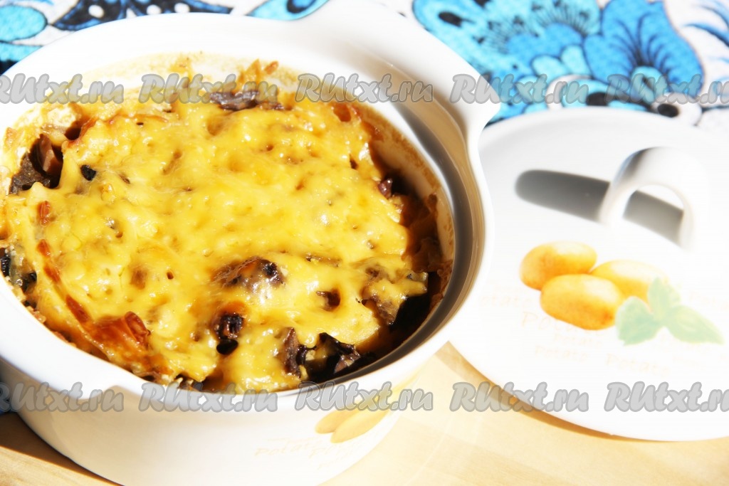 Затем снять с горшочков крышки и оставить на 5 минут в духовке для зарумянивания.