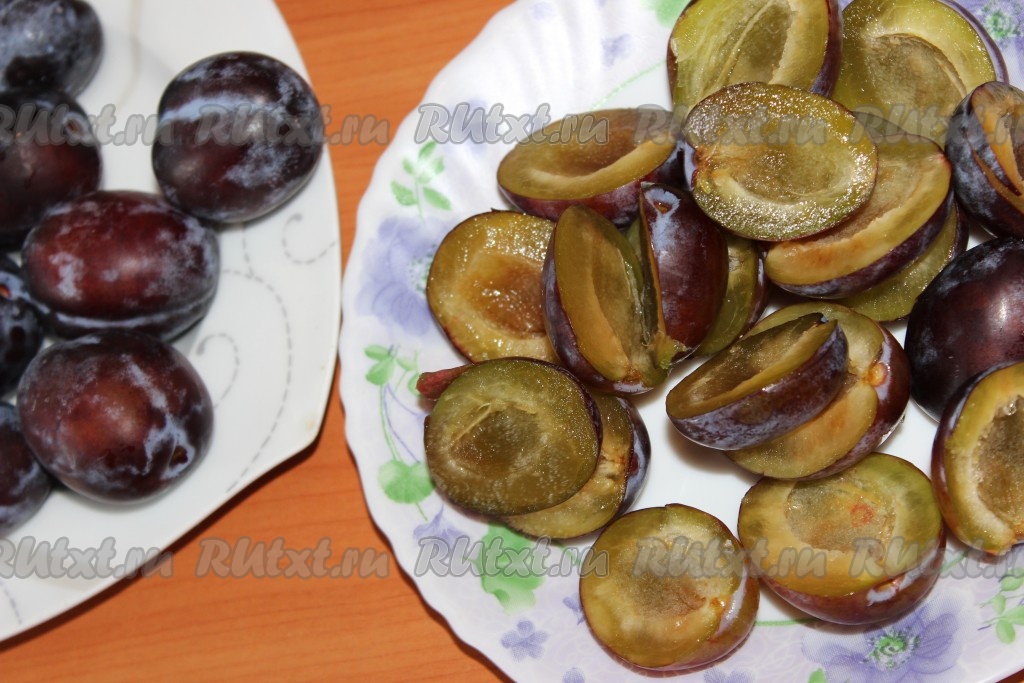 Сливы вымыть, удалить косточки, разрезать на четвертинки. Если сливы не очень крупные, можно их разрезать на половинки.