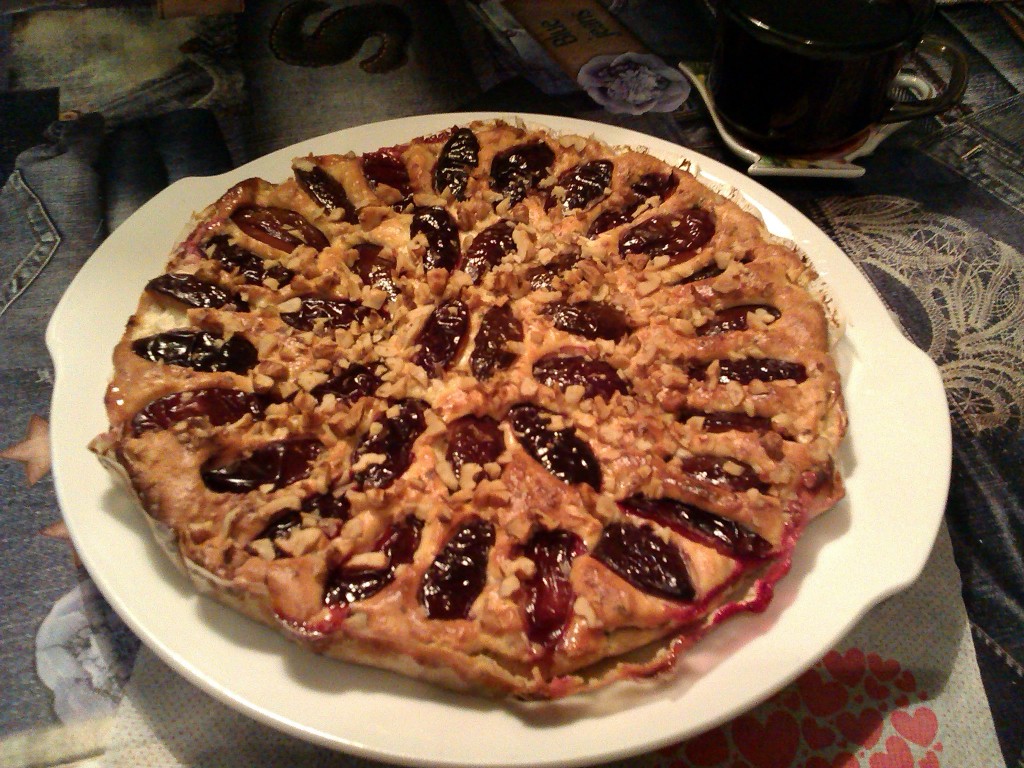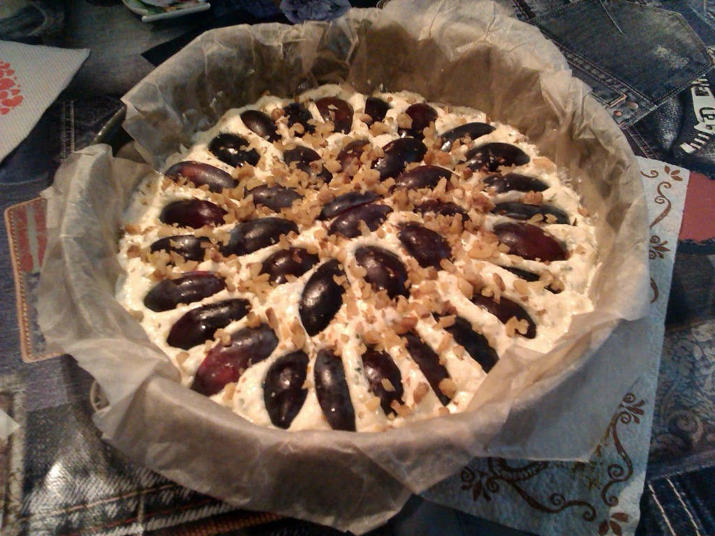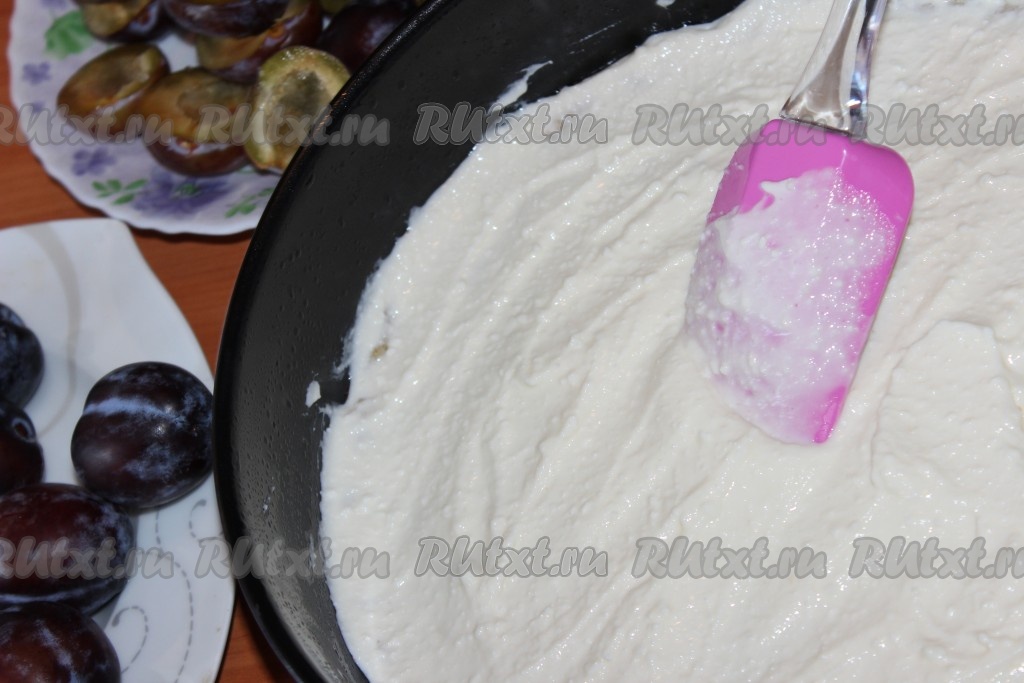 Сверху творожной начинки слегка вдавить половинки или, как у меня на фото, четвертинки слив.