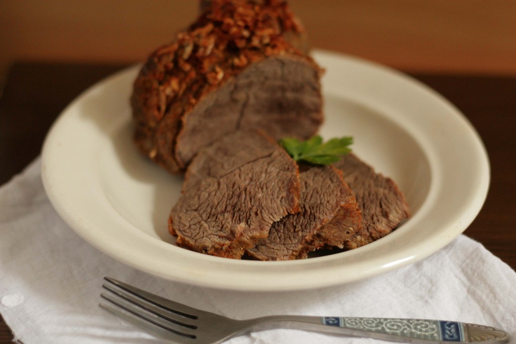 Говядину, приготовленную на пару, можно подавать как горячей, так и холодной. Я даже не могу точно сказать, как вкуснее. Плюс приготовления говядины на пару в том, что мясо получается очень сочным, пропитанным ароматом пряностей, оливкового масла и чеснока. От кусочка мяса, приготовленного по этому рецепту, отказаться очень трудно.