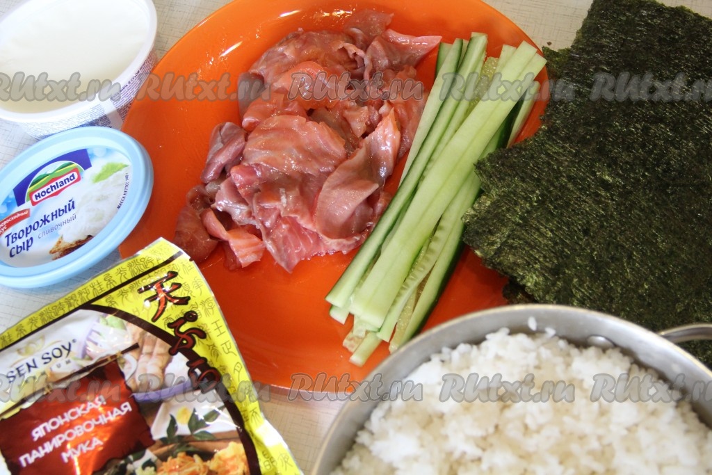 Подготовить продукты для изготовления роллов.