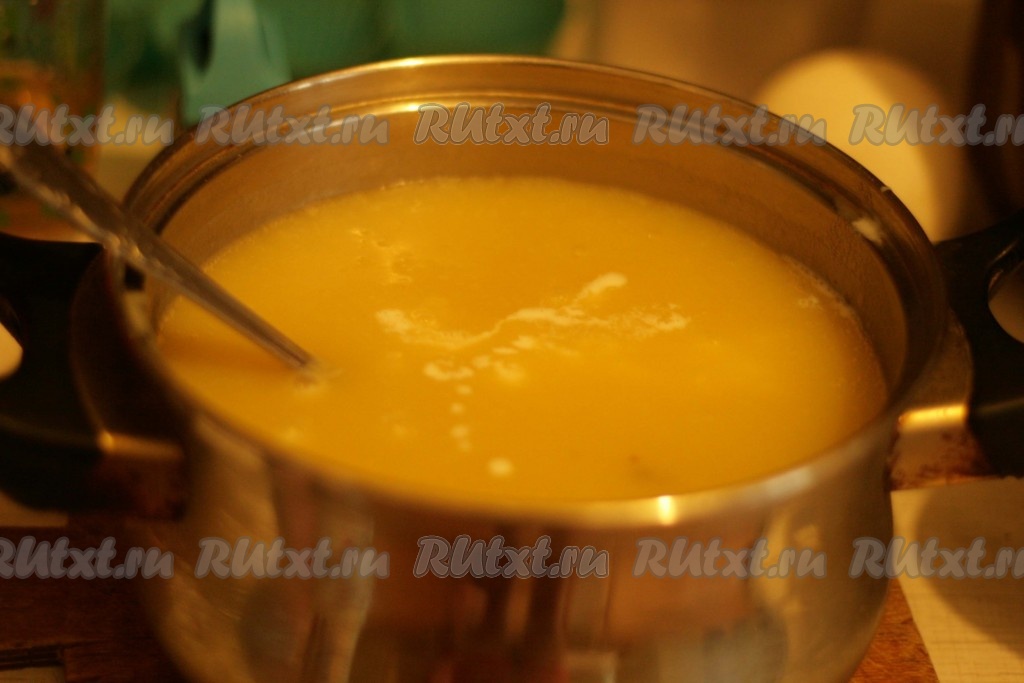 Молоко нагреть и ввести в суп.