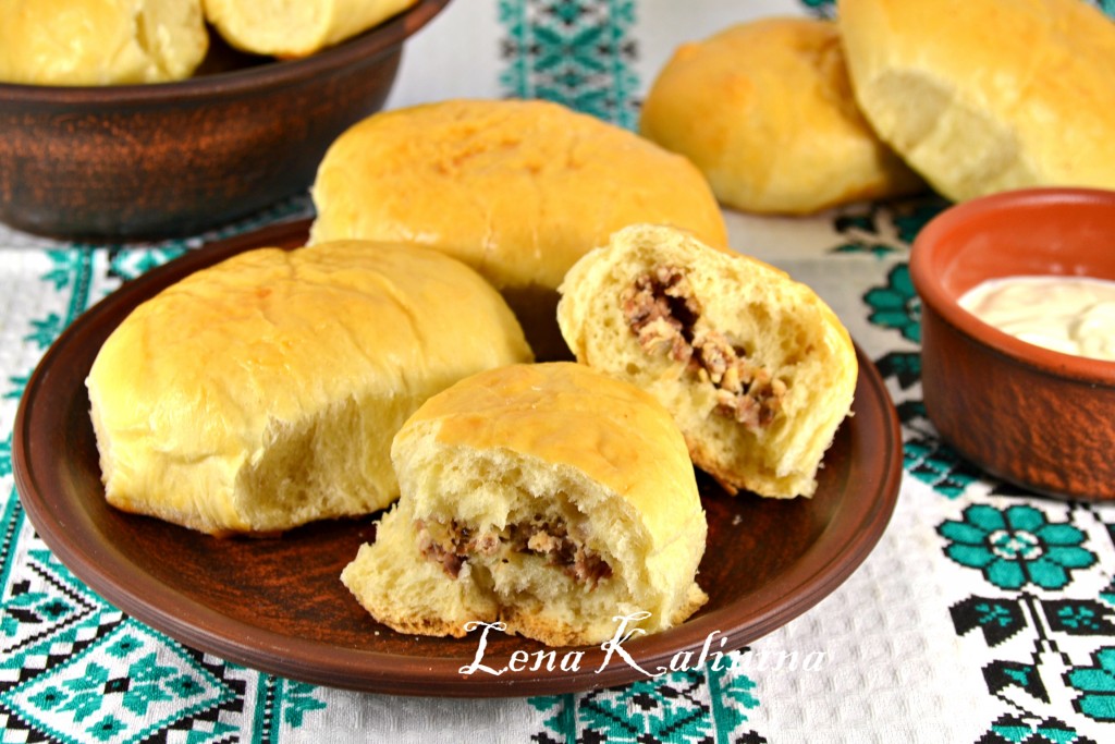 Готовую выпечку достать из духовки. Пирожки с мясом, приготовленные из дрожжевого теста, замешанного на молоке, получаются мягкими, пушистыми и очень вкусными. Отличным дополнением к ним станут молоко, кофе или чай.
