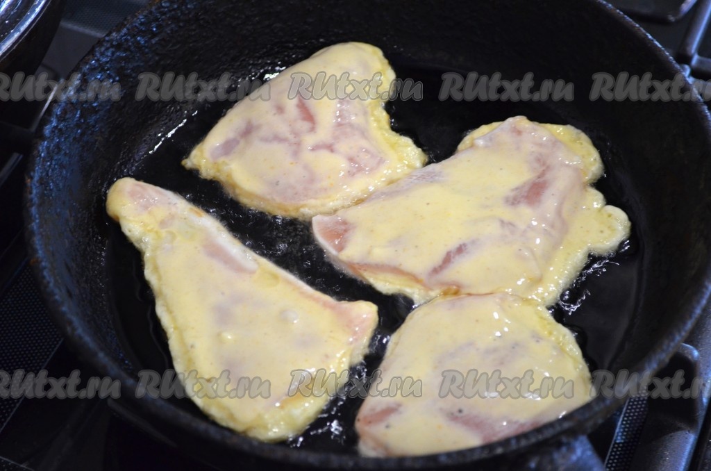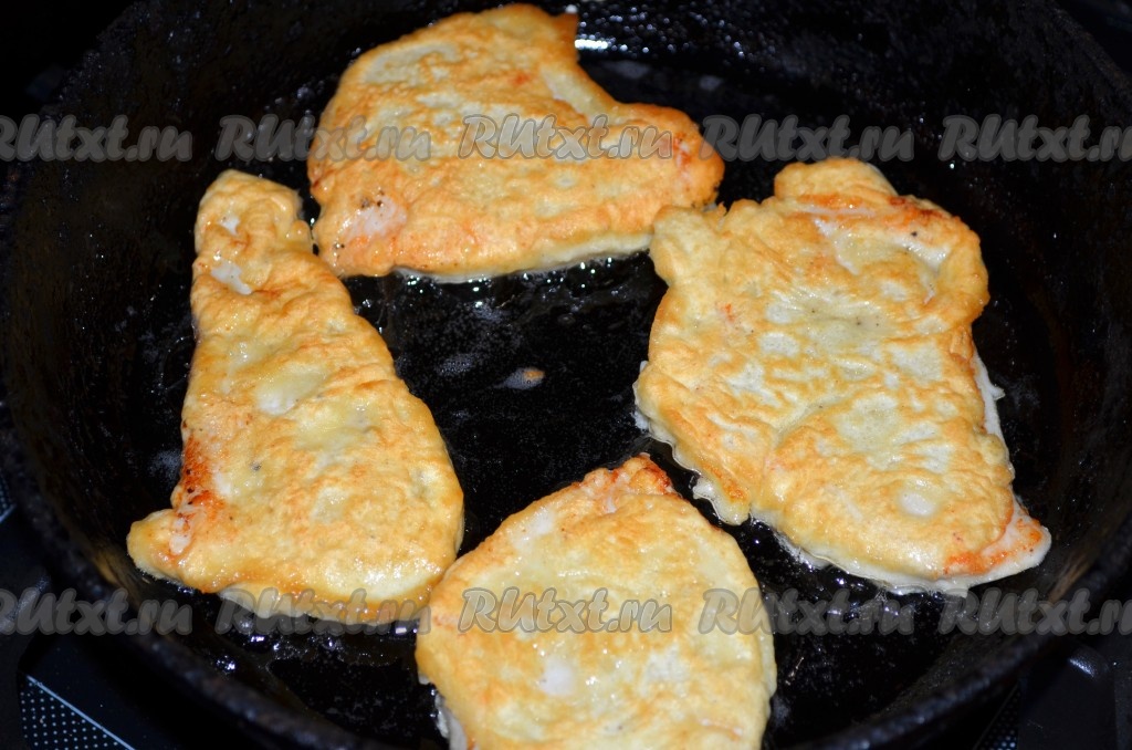 Разогреваем сковороду с маслом. Каждый кусочек филе обмакиваем в пивной кляр с двух сторон и кладем на раскаленную сковороду.