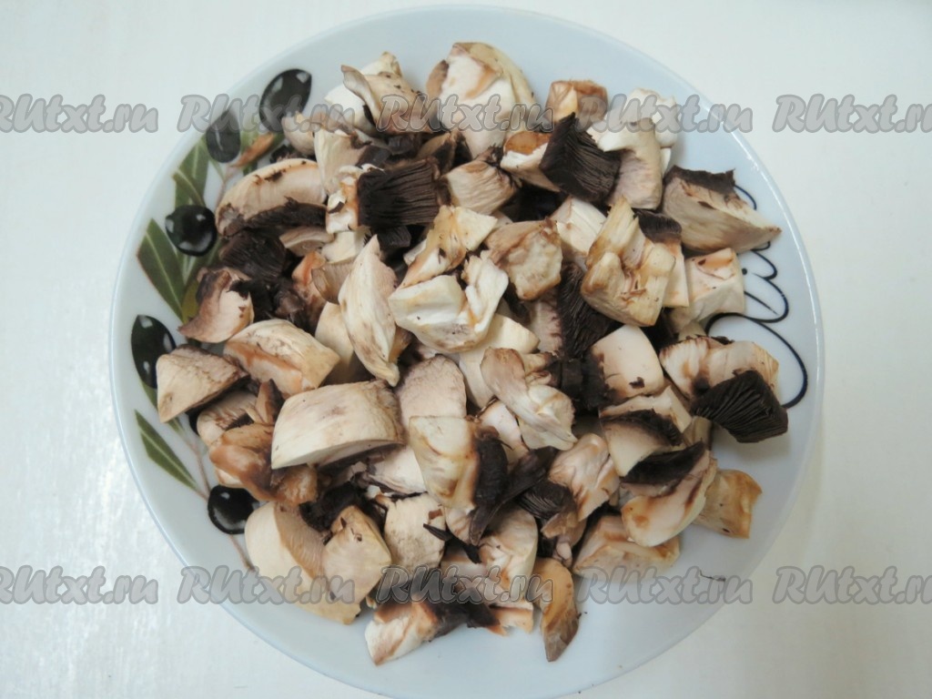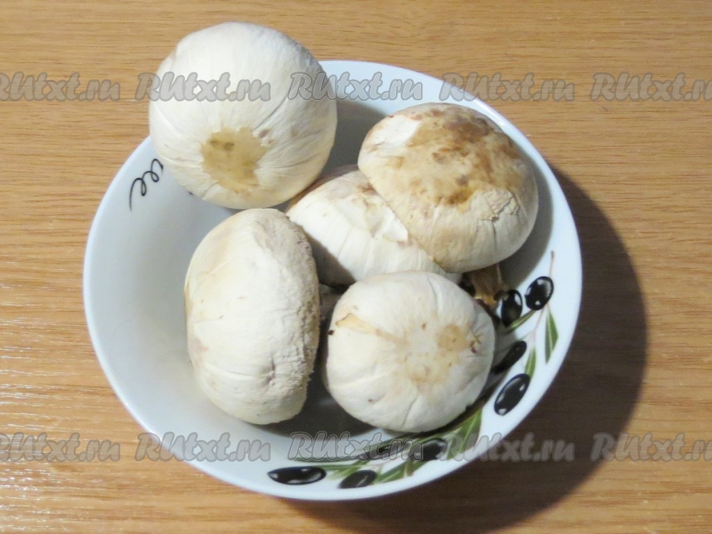 Шампиньоны чистим от кожицы (если они не очень грязные, достаточно вытереть их влажным, чистым полотенцем).