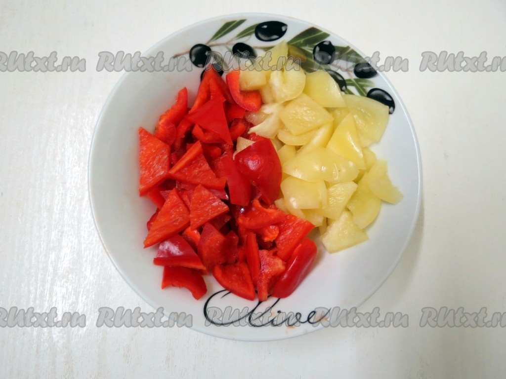Перец чистим от семян и нарезаем кусочками произвольного размера.