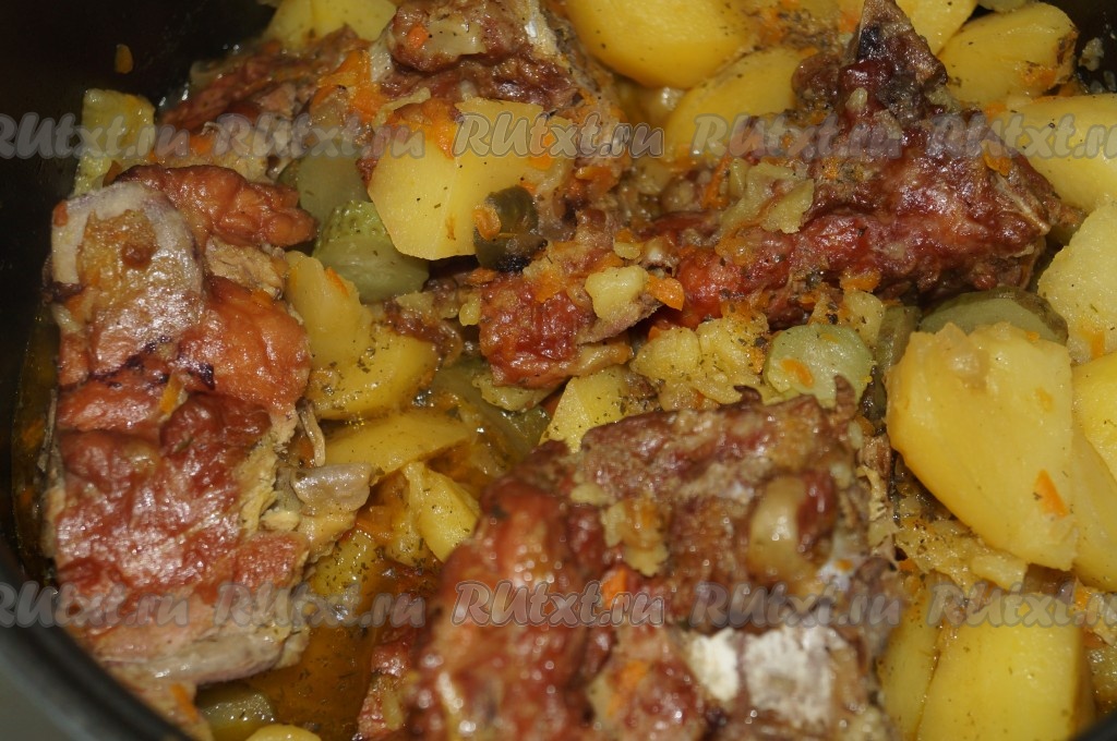 Картошка с копчёными рёбрышками, приготовленная в мультиварке, получается необыкновенно вкусной.