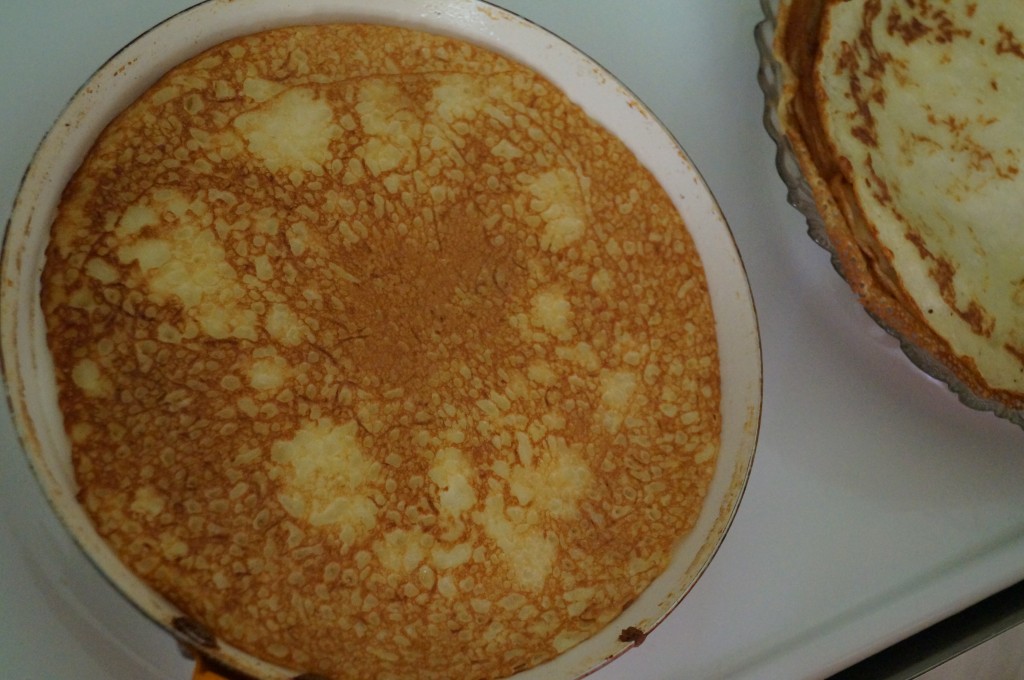 Тесто для блинов хорошо перемешать.
