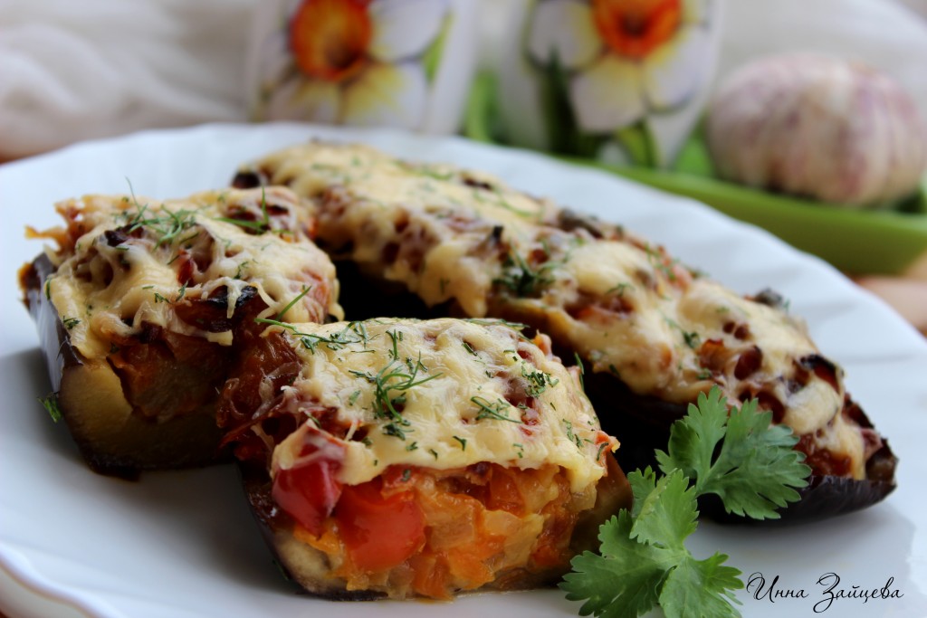 Баклажаны, фаршированные овощами, запеченные в духовке