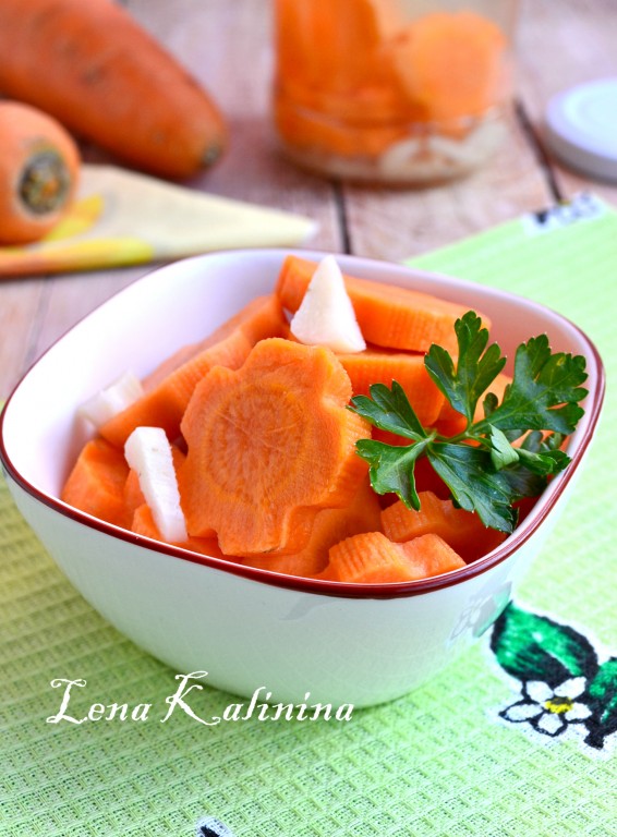 Затем баночку с морковью поместить в холодильник на 12 часов, можно попробовать уже через 6 часов. Вот и все, вкуснейшая быстрая маринованная морковь готова к употреблению!