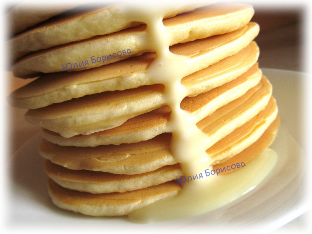 Рецептов американских оладий - панкейков существует множество. Но я хочу предложить вам совершенно простой, но, на мой взгляд, самый удачный вариант приготовления пышных панкейков. Эти оладьи, замешанные на молоке, получаются очень воздушными, похожими и по ощущению, и по вкусу на бисквит. Такие панкейки можно подать с вареньем, любым сиропом, медом. А можно использовать их в качестве коржей для приготовления тортика, перемазав любимым кремом. Невероятно вкусные - советую!