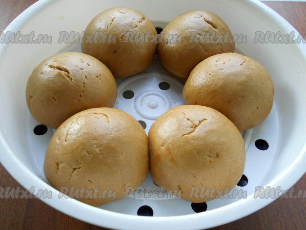 Тесто разделить на 6 частей. Каждую - скатать в шарик. Поместить заготовки пряников в чашу мультиварки для приготовления на пару на некотором расстоянии друг от друга.