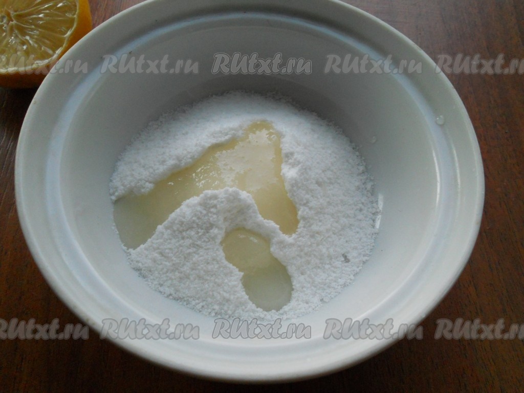 Приготовить глазурь: к сахарной пудре понемногу добавлять лимонный сок и перемешивать до нужной вам консистенции (гуще или реже).