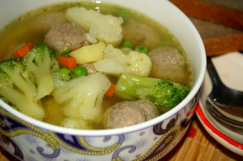 С овощами можно приготовить немало блюд, которые порадуют и яркими красками, и прекрасным вкусом. Сегодня давайте приготовим вкусный, аппетитный овощной суп с фрикадельками. Рецепт очень прост. С овощами можно экспериментировать, исходя из того, что есть в наличии. В этот раз я добавила брокколи, цветную капусту и горошек, супчик получился ярким и очень вкусным.