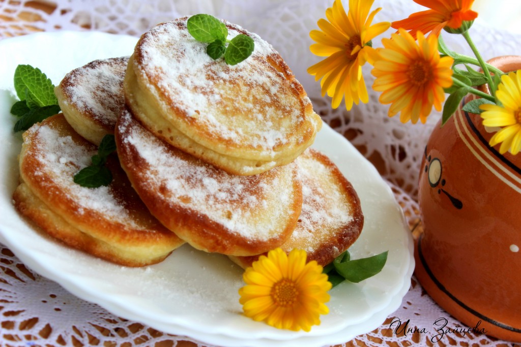 Нежные, пышные оладьи, приготовленные на сметане, по желанию посыпать сахарной пудрой и подавать с медом, вареньем или сгущенным молоком. В любом случае, они будут невероятно вкусными.