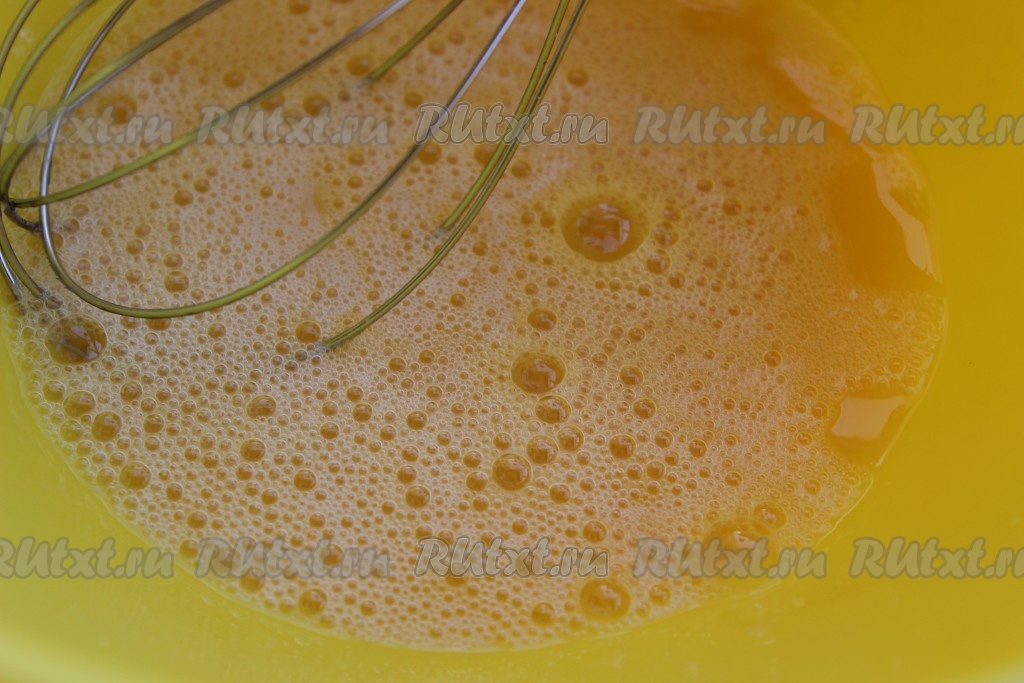 Перед началом приготовления оладий необходимо заранее достать из холодильника яйца и сметану. Они должны быть комнатной температуры. В глубокой миске взбить венчиком яйца, добавить щепотку соли.