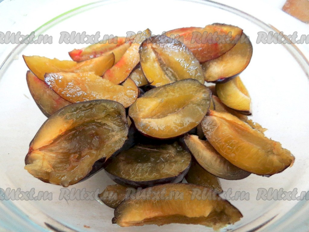 Разрезаем сливы на 4 части, если мягкие, тогда на 2.