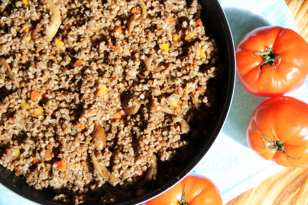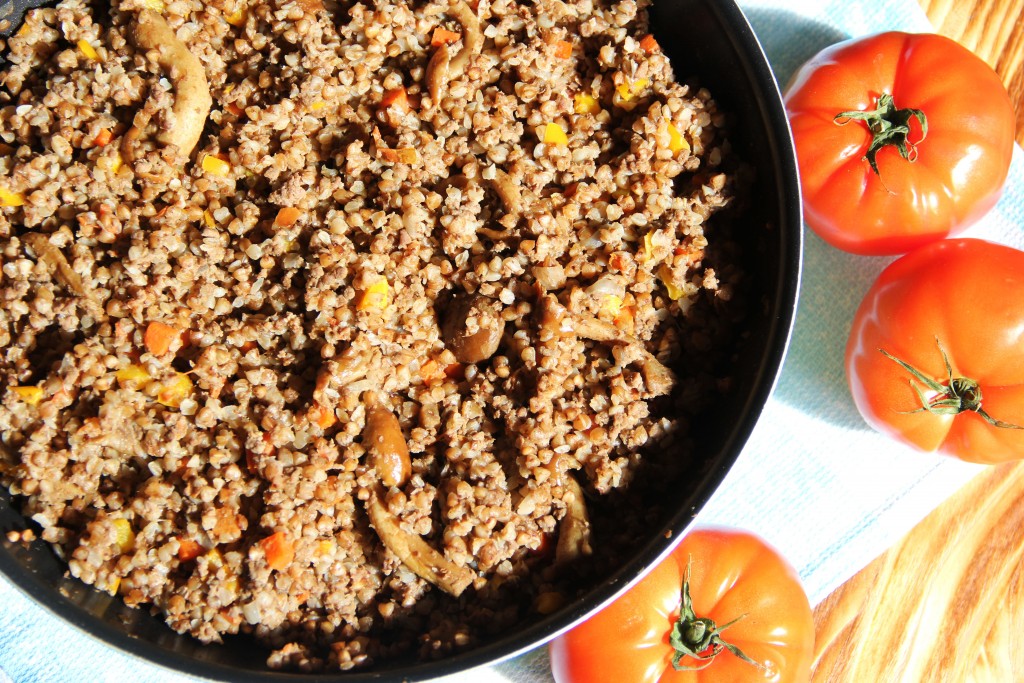 Последнее время часто экспериментирую с гарнирами из круп. Оказывается, приготовить любую крупу с фаршем или кусочками мяса, да ещё с грибами и овощами очень просто и быстро. А в результате Вы накормите свою семью вкусно и сытно. Всё довольно быстро, просто и экономично. Овощи можно использовать, как сезонные, так и заморозку. Фарш тоже по вкусу, я люблю взять кусочек парного мяса и прокрутить его через мясорубку. Сегодня я предлагаю Вам попробовать приготовить гречку с фаршем, грибами и овощами. Блюдо получается очень вкусным и сытным.