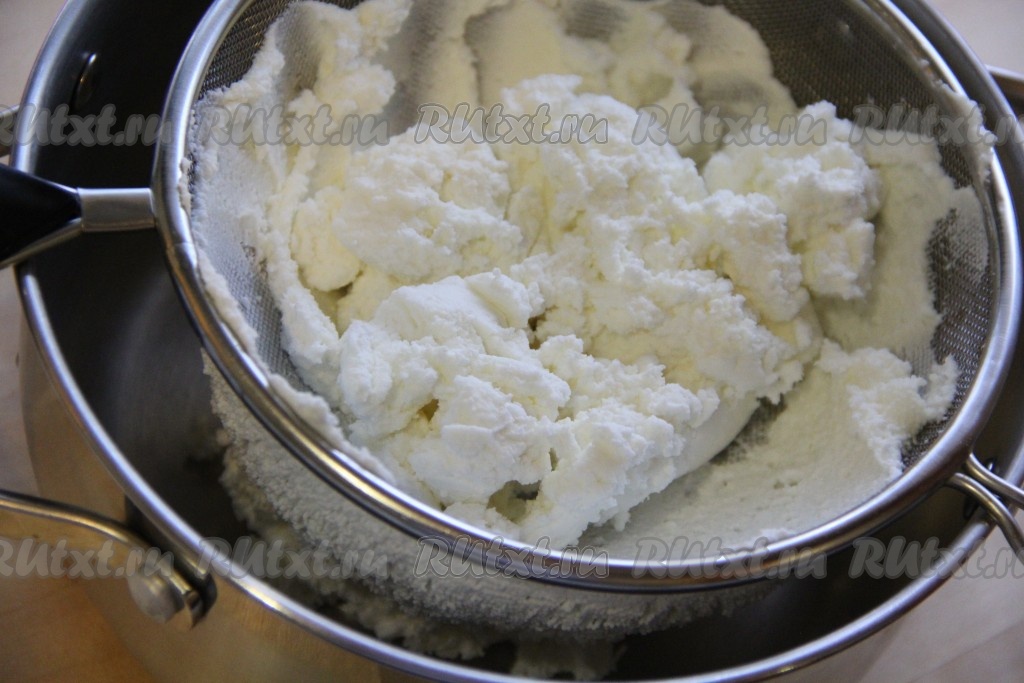 Творог перетереть через сито, таким образом наш крем получится более однородным и нежным (или пробить погружным блендером).