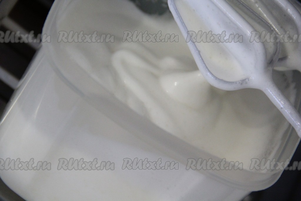 Сливки предварительно хорошо охладить, затем взбить с помощью миксера до стойких пиков (если взбиваете сливки, в состав которых не входит сахар, тогда взбивайте с добавлением сахарной пудры).