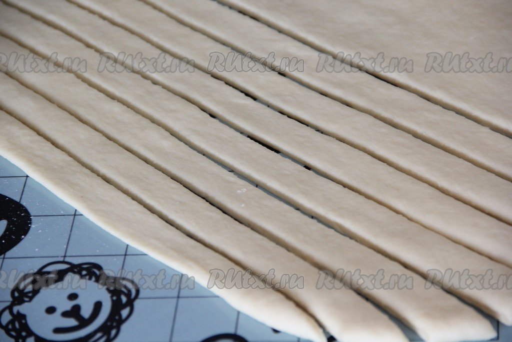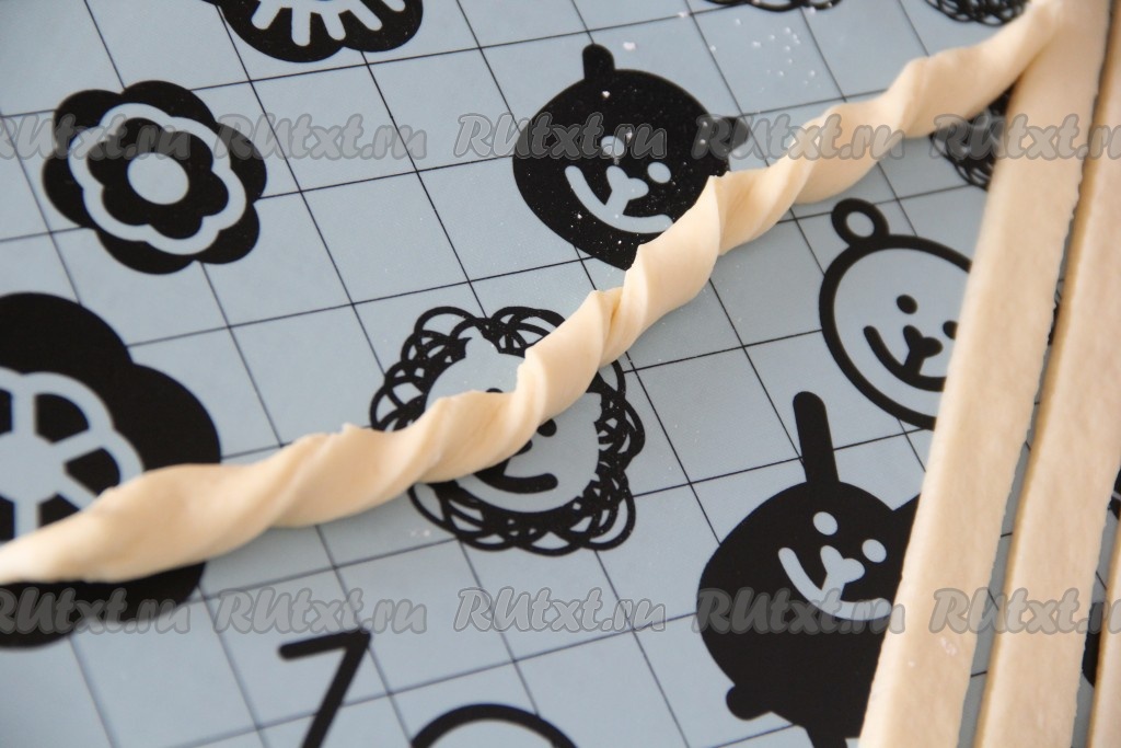 Полоски теста слегка перекрутить в жгутик, не плотно.