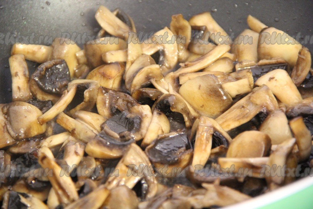 В глубокую сковороду добавить растительное масло и поставить на огонь. Добавить грибы в сковороду и обжарить их в течение 15 минут, периодически помешивая.