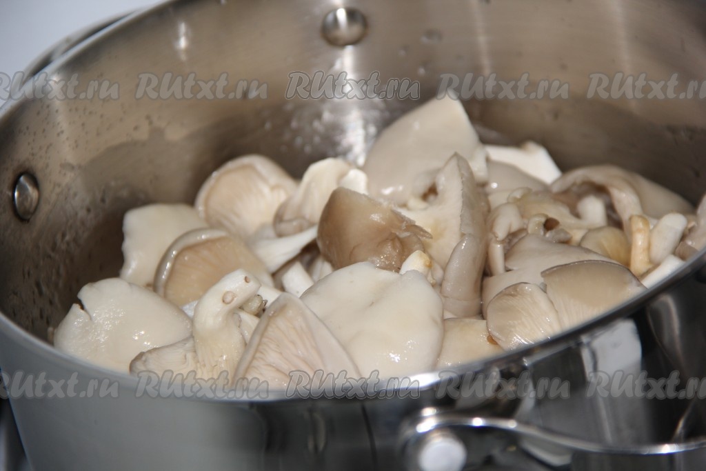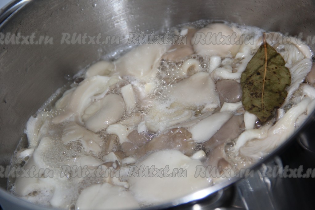 После того как маринад проварится с момента закипания 2-3 минуты, выложить в него вешенки.